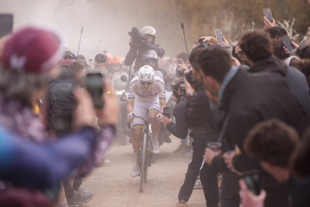 Tadej Pogačar in dirka Strade Bianche. Ljubezenska zgodba, ki navduši vedno znova in znova. Kolesarja, ker uživa v ragibanem terenu Toskane, ker komaj čaka na makadamske odseke, navijače, ker lahko od blizu vidijo dirkati enega največjih vseh časov, ta pa se jim vedno znova pokloni. Že v četrtek, ob odkritju kamnitega mejnika na sektorju Colle Pinzuto je bilo moč čutiti, da bo podpora ob progi neverjetna, a prizori na sobotni dirki so bili nekaj, kar je z besedami težko opisati. Razgreti navijači so namreč pripravili nogometno vzdušje, gorele so bakle, opazni so bili številni transparenti, polni zanimivih napisov, velika večina njih pa namenjenih ravno svetovnemu in evropskemu prvaku.